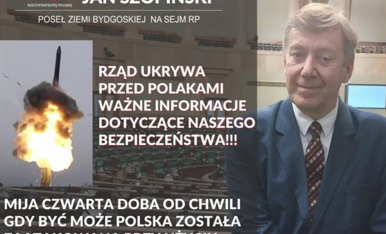 26 kwietnia rano na profilu FB posła Jana Szopińskiego ukazała się informacja z pytaniem: „Wypadek? Jaki to rodzaj rakiety?”. Dalej czytamy, że mija czwarta doba, odkąd powzię...